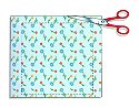 | 1 - Dans ton tissu, découpe un carré de 20cm x 20cm qui te servira de contenant pour ton parfum. |