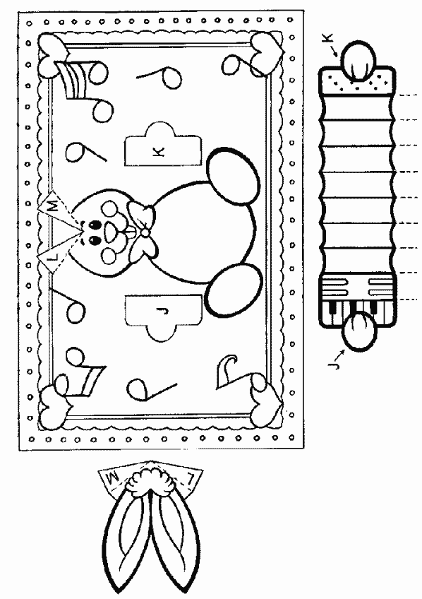 plié pour le montage. Colle les languettes J et K à leur place sur la