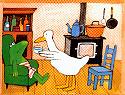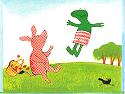 | Petit-Bon poursuit son chemin très préoccupé. Il s'arrête chez son ami le lièvre. | |